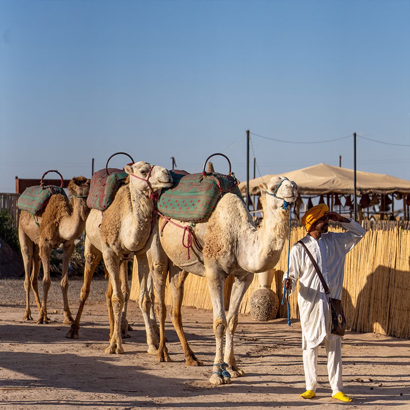 - Activity add-ons (camel, buggy, quad — available as separate bookings)