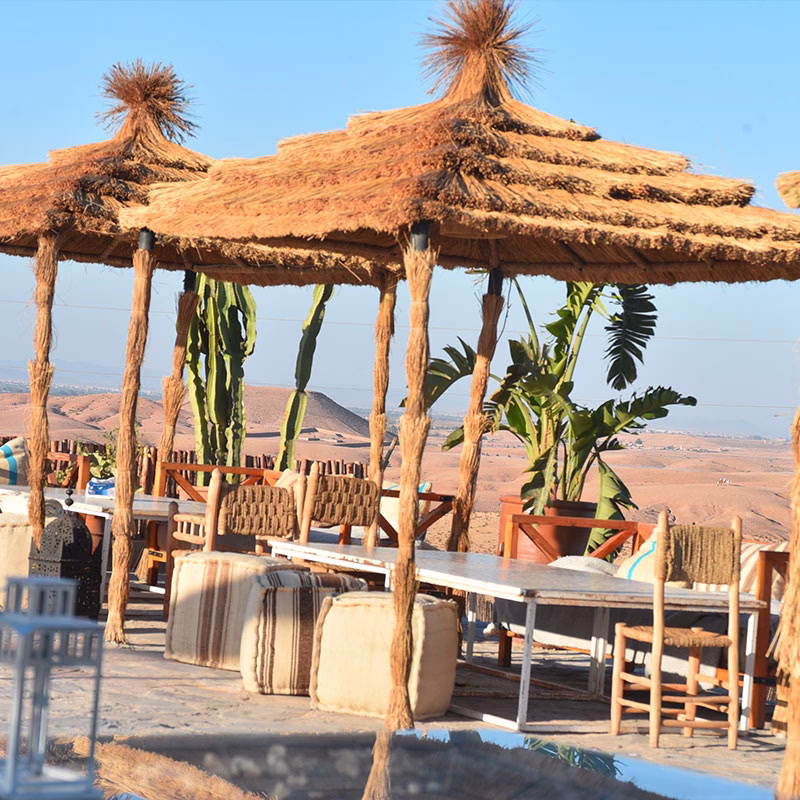 After lunch, the afternoon is entirely yours until 5:00 PM. The pool is the centrepiece — swim, float, and take in the panoramic Agafay and Atlas views from the water. The combination of Moroccan sun, cool pool water, and desert silence is one of the most enjoyable ways to spend an afternoon in Morocco.