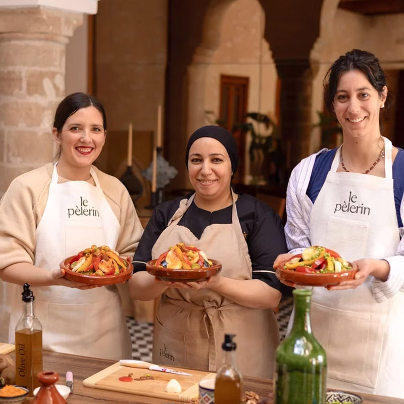 Join the Le Pèlerin Moroccan Cooking Class — one of Marrakech’s most charming culinary experiences. Hosted inside a traditional riad in the heart of the Medina, this workshop is designed for travelers who want to learn Moroccan cooking in a warm, intimate and non-touristy setting.