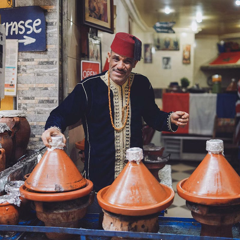- 10+ authentic tastings favoured by locals — from snails in herbal broth to cactus fruit, kaab ghzal to open-air barbecue