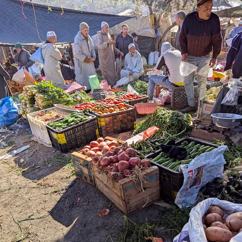 If your excursion falls on a Monday, you will have the rare chance to stop at the famous weekly rural market of Tnine Ourika. Farmers and villagers from surrounding mountain communities gather to trade livestock, fresh produce, spices, handmade crafts, and clothing. It is one of the most authentic and atmospheric traditional souks near Marrakech — a world away from the tourist markets of the medina.